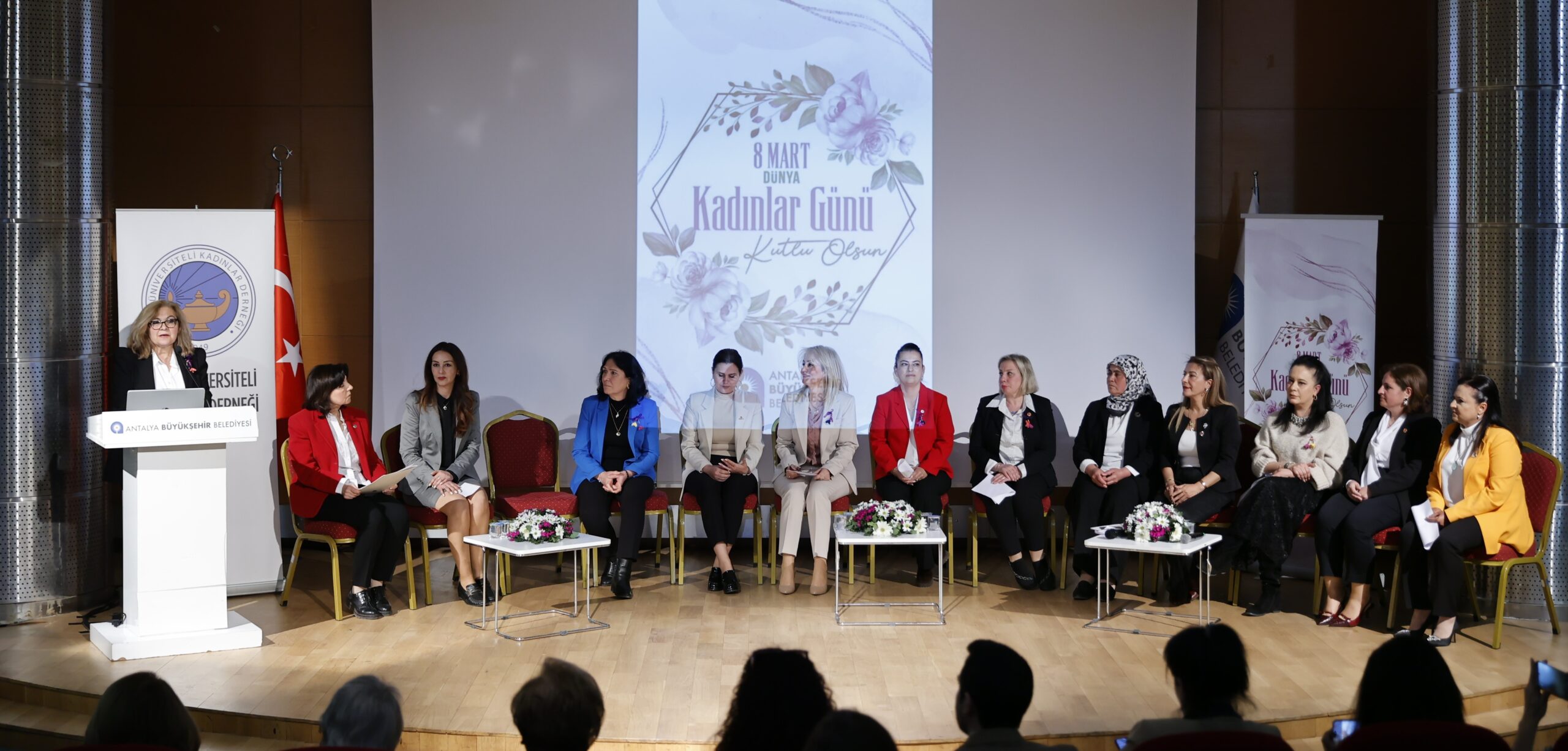 Antalya Büyükşehir Belediyesi Ana Hizmet Binası nikah salonunda gerçekleştirilen “Kadın Muhtarlarla Eşitlikçi Uygulamalar” paneline Antalya Büyükşehir Belediye Başkan Vekili Büşra Özdemir, Muratpaşa Belediyesi Başkan Yardımcısı Nuran Yılmaz, Antalya Barosu Başkanı Avukat Ali Çağdaş Bozaner, Türk Üniversiteli Kadınlar Derneği Antalya Şube Başkanı Prof. Dr. Fulya Sarvan ve kadın muhtarlar katıldı.