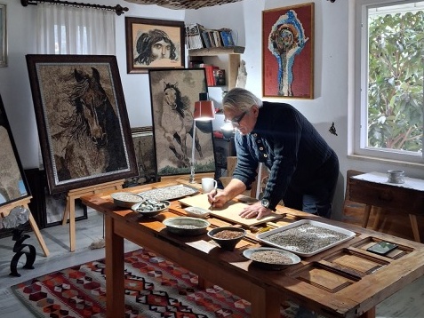 Kıymetli opera sanatçımız Burcu Kuru, Antalya’da sergi ve atölyesinden etkilendiği Doğal Çakıl Taşı Mozaik Sanatçısı Süleyman Sarı Bey’den bahsedip, bizi irtibata geçirdi. Nehir yataklarından itina ile topladığı ve doğal hâlini bozmadan tablo ve panolara dönüştürdüğü eserleri hakkında önce sözlü sonra yazılı söyleşi yaptık.