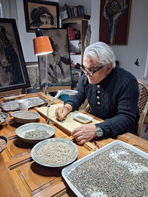 Malzemeyi pasif bir araç olarak değil, jeolojik zamanın tanığı ve kendi ruhu olan bir özne olarak görüyorum. Eserlerimdeki 1-3 milimetrelik taşlar, sadece birer mozaik parçası değil, nehirlerin, rüzgârların ve zamanın mirasıdır.