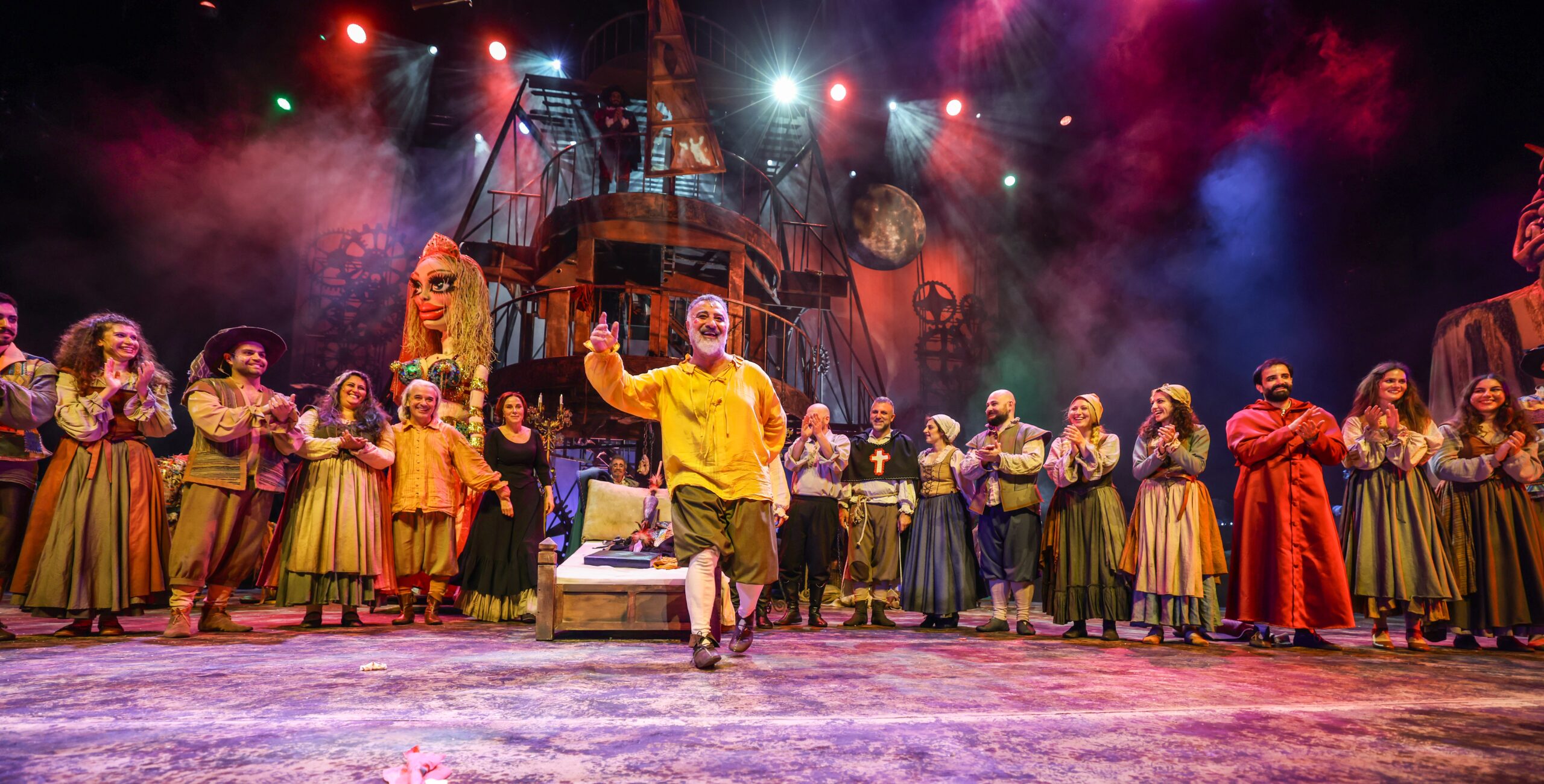 Çolpan İlhan & Sadri Alışık Tiyatrosu ve Piu Entertainment ortak yapımı olan, Cervantes’in ölümsüz eserinden uyarlanan Don Quixote Müzikali; 30 kişilik dansçı ve oyuncu kadrosu, 15 kişilik canlı orkestrası, görkemli dekoru ve çarpıcı kostüm tasarımlarıyla toplamda 80 kişilik büyük bir prodüksiyon olarak sahneye taşınıyor.