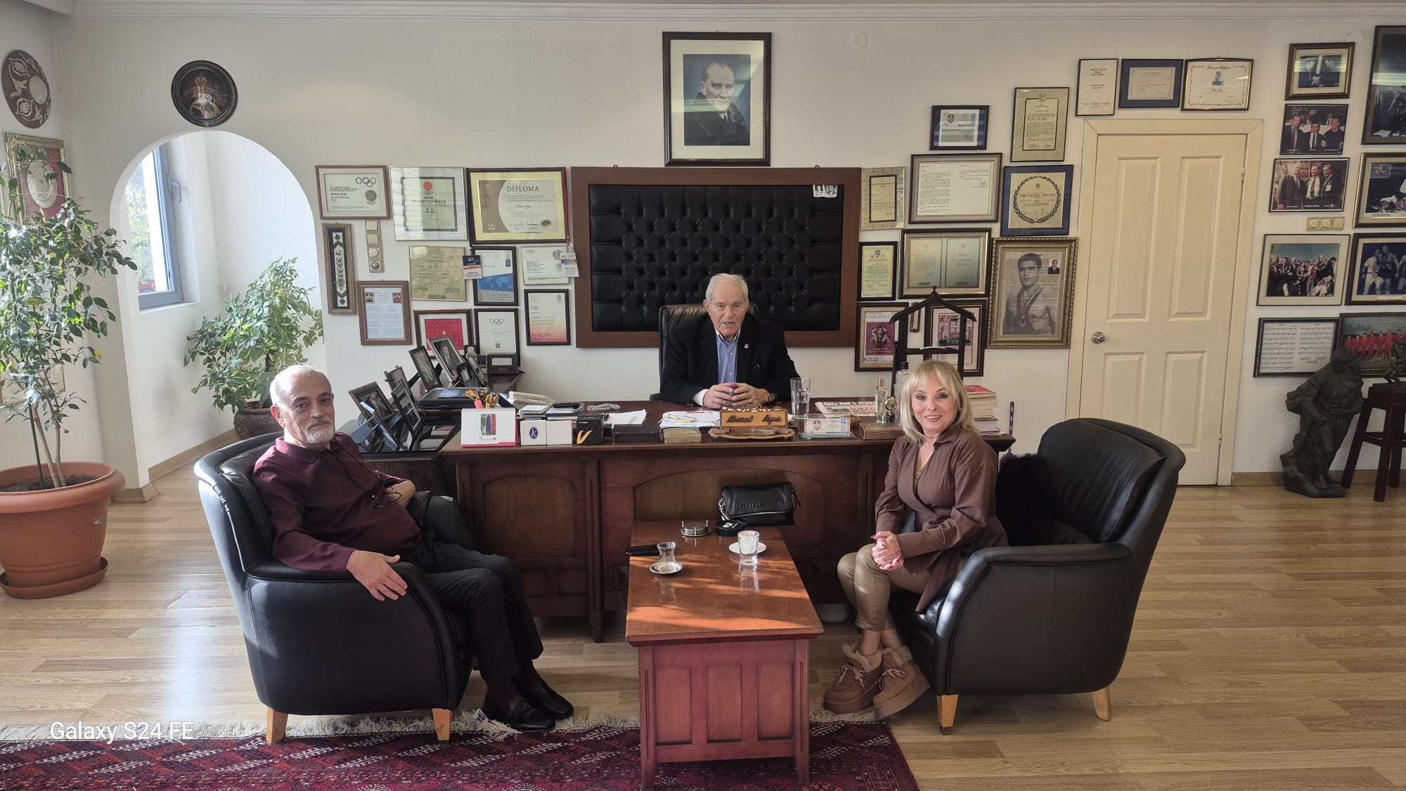 Sonra da “Ama güreşte bakıyorum, küçücük Türkiye bu iki devin ortasında, birincilik kürsüsünde, birini sağına, birini soluna alıyor. Bu nasıl oluyor?” diye sordu.