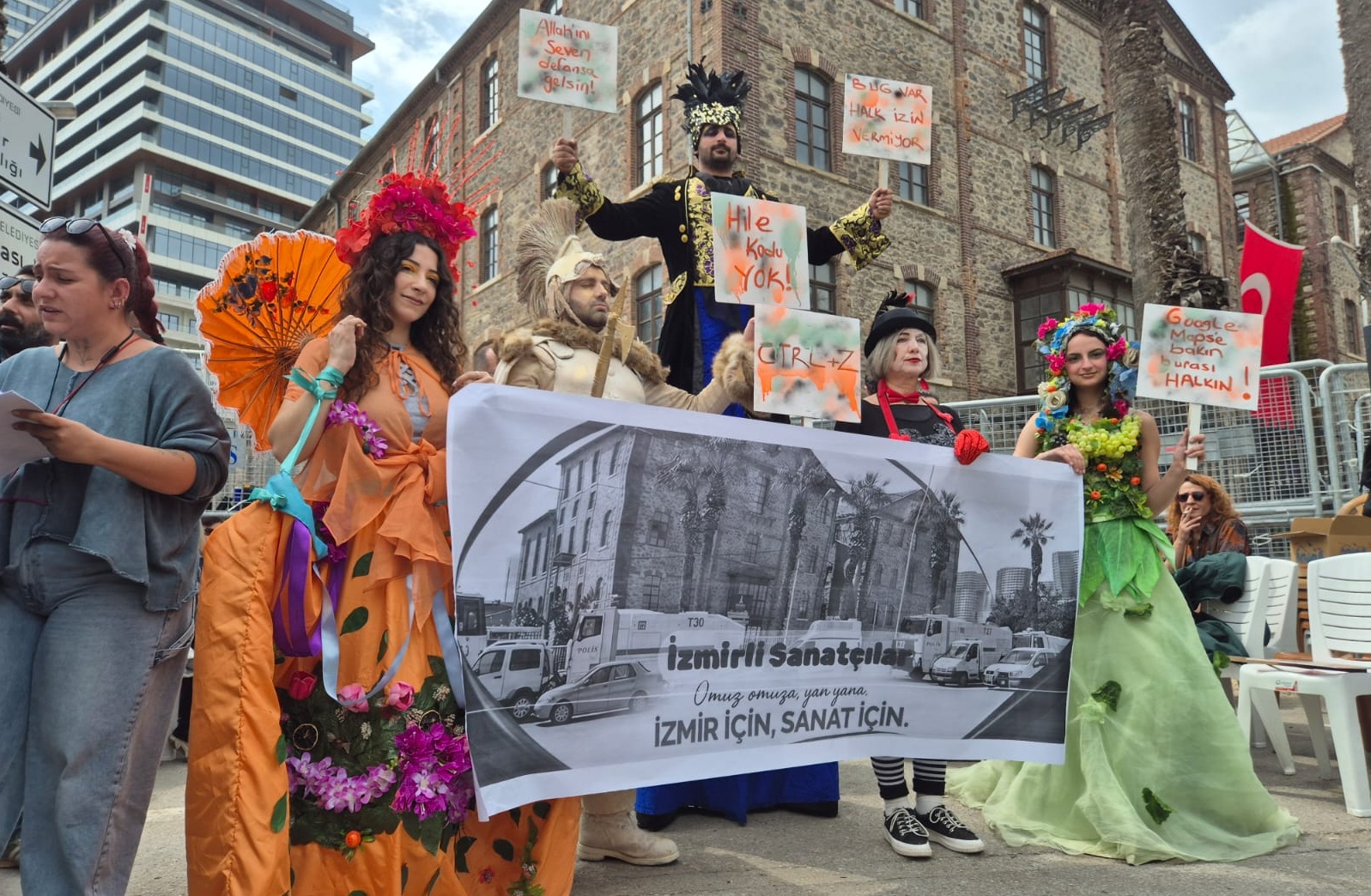 İzmirli sanatçılar adına açıklama yapan Oyun Hamuru Tiyatrosu’ndan Burak Özbaykuş, ise “Yetkililere çağrımız; hukukun üstünlüğünü ve adaleti sağlamaları, özellikle İzmir halkı üzerinde yaratılan bu mağduriyetin ivedilikle giderilip Meslek Fabrikası’nın yeniden İzmir halkının hizmetine açılmasıdır. Biz İzmirli sanatçılar olarak mahkemenin adil bir şekilde sonuçlanacağı güne kadar İzmir halkının yanında yer alacağımızı kamuoyuna bildiririz” diye konuştu.