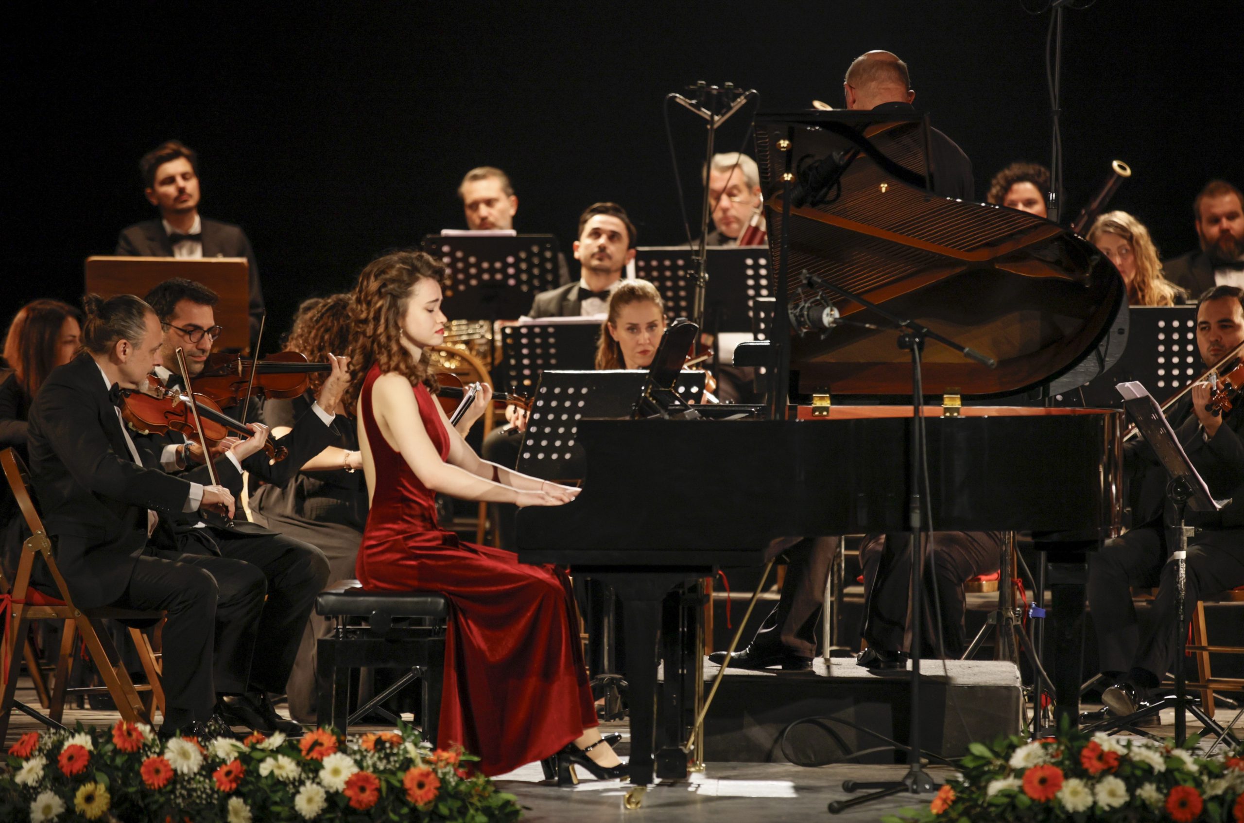 Konserin ilk bölümünde sahne alan genç piyanist Nehir Özzengin, Mozart’ın dramatik yapısıyla öne çıkan Piyano Konçertosu No. 20 yorumuyla Elhamra Sahnesi’nde büyük beğeni topladı. Yaşına rağmen sergilediği olgun yorum, teknik hâkimiyet ve sahne duruşu, dinleyicilerden uzun süreli alkış aldı. Özzengin’in performansı, gecenin ilk bölümünde salonun enerjisini belirleyen en güçlü anlardan biri oldu.