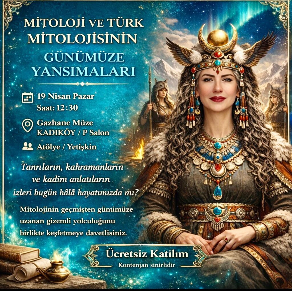 19 Nisan 2026 Pazar günü, saat 12.30’da Kadıköy’de bulunan Gazhane Müzede Çocuk ve Gençlik Sanat BİENALİ etkinliklerinde MİTOLOJİ – TÜRK MİTOLOJİSİ VE GÜNÜMÜZE YANSIMALARI konulu söyleşi yapıyorum, yaş sınırı yok ve herkese açık olacak.