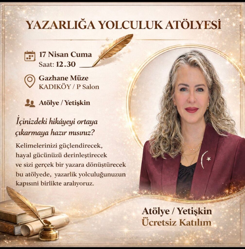 17 Nisan 2026 Cuma günü, saat 12.30’da Kadıköy’de bulunan Gazhane Müzede Çocuk ve Gençlik Sanat BİENALİ etkinliklerinde YAZARLIĞA YOLCULUK ATÖLYESİ