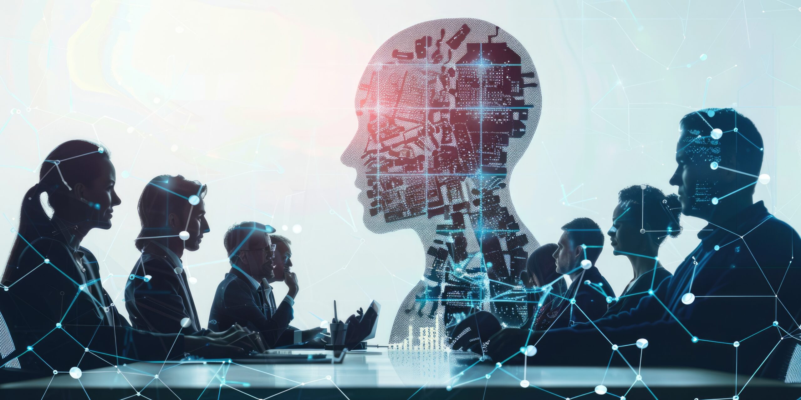In a modern office, a robot leads a meeting with professionals, emphasizing collaboration and innovation AIG62